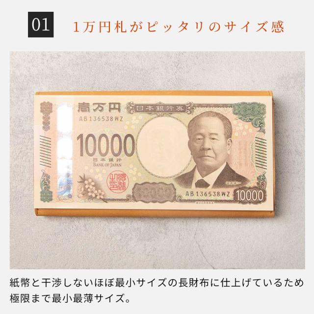 紙幣と干渉しないほぼ最小サイズの長財布に仕上げています。