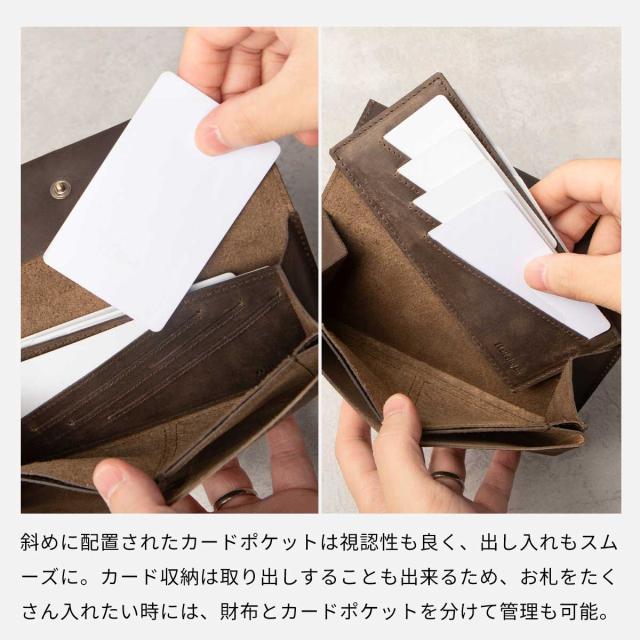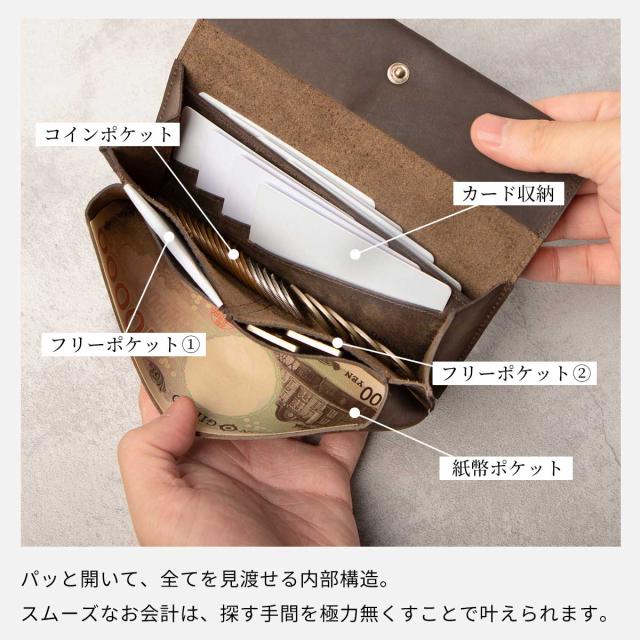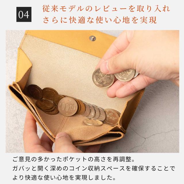 ファスナーや芯材を省き、僅か1cm厚なのにカードもお札も小銭も収納OK!後ろポケットにすっきり。