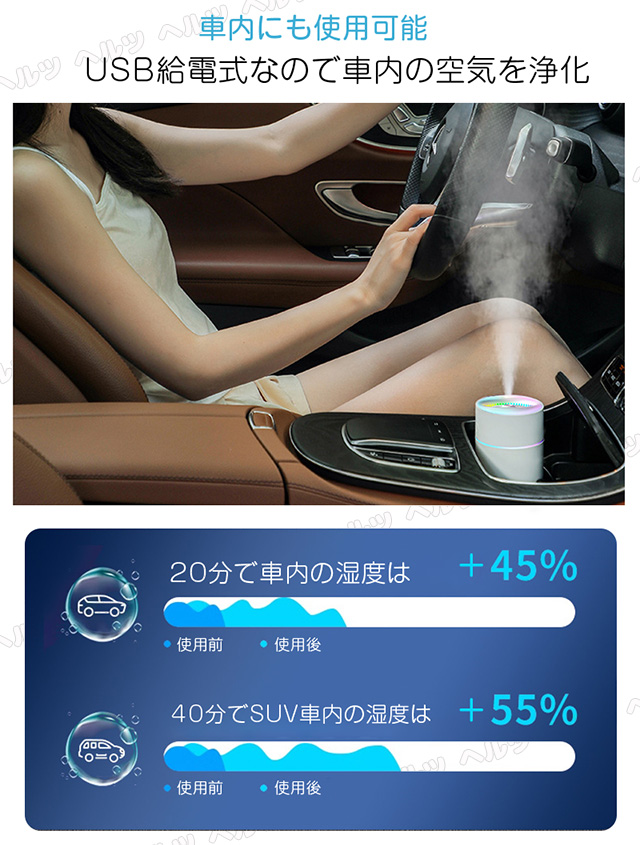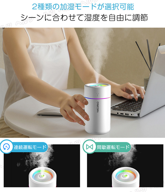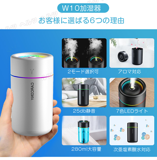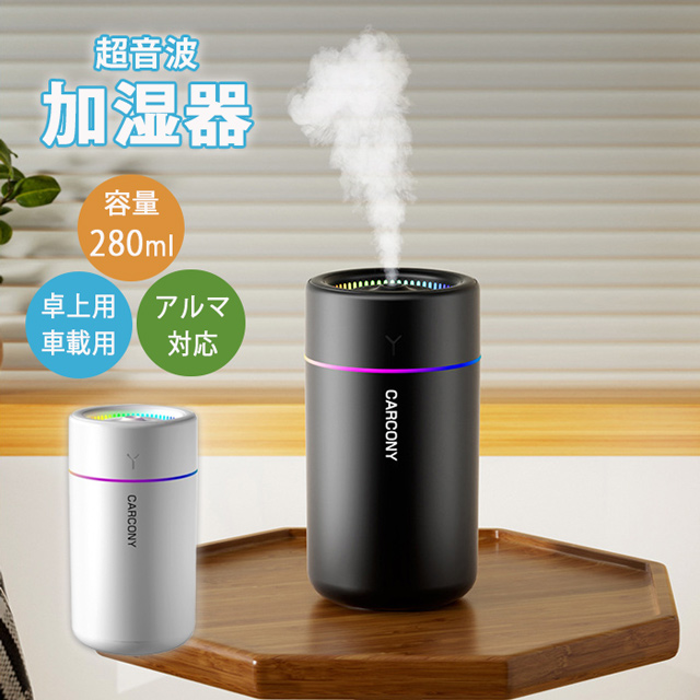「クーポン配布中」ミニ 超音波 加湿器 卓上加湿器 車用加湿器 七色LED 次亜塩素酸水対応 280ml 大容量 2種類加湿モード 空焚き防止 水漏れ防止 静音 車載保湿 USB給電式 暖房乾燥/花粉症対策 寝室 家庭 子供部屋 お手入れ簡単 オフィス 秋冬乾燥対策