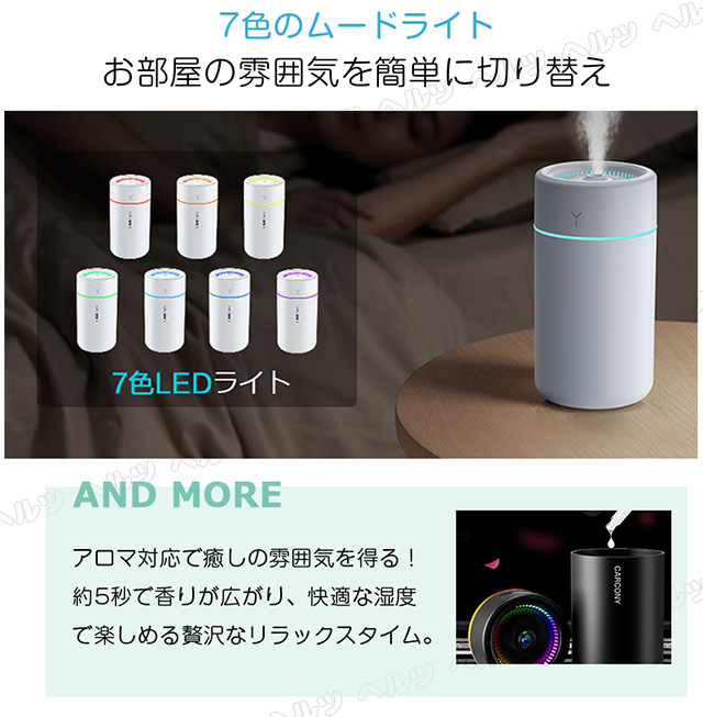 【卓上加湿器・超音波式&七色LED】