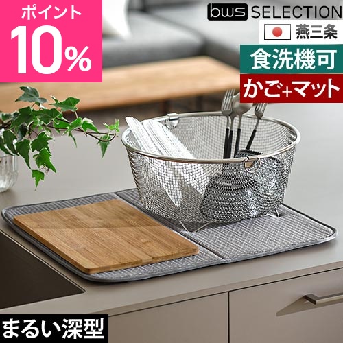 ビーワースセレクション 選べる豪華特典 すっきり暮らす 水切りかごまるい深型 水切りマット ざる 食器乾燥マット 水切りラック 洗い物カゴ 吸水マット ステンレス キッチン 日本製 大判 燕三条 洗濯機で洗える おしゃれ 食洗機対応 bws SELECTION