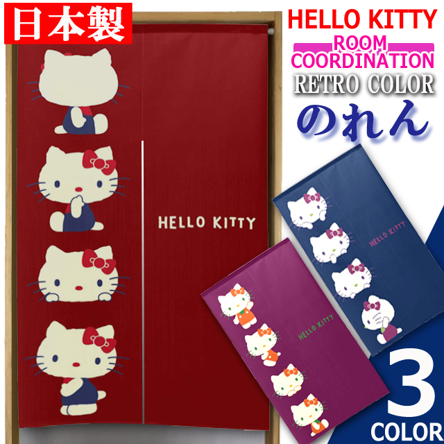 キティ HELLOKITTY のれん 間仕切り 暖簾 タペストリー カーテン 部屋 リビング (ハローキティレトロカラーのれん) キッチン 脱衣所