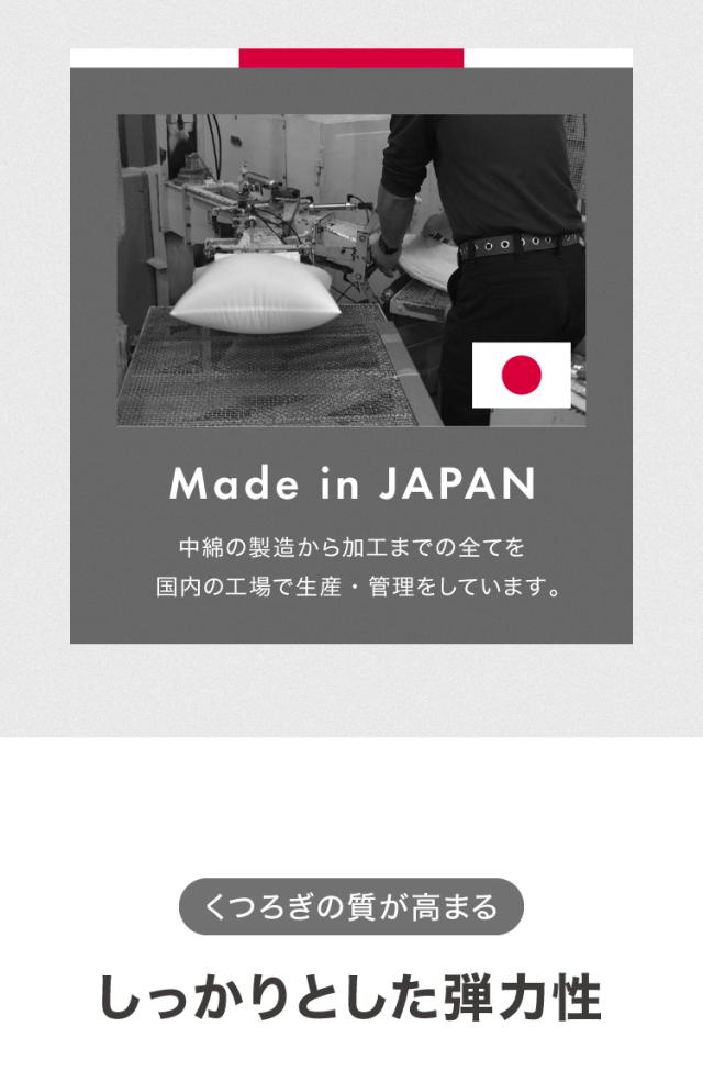 中綿の製造から加工まですべてを国内の工場で生産・管理を行っています。