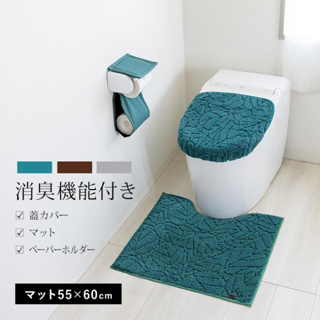 トイレフタカバー、マット、ペーパーホルダーカバーの3点セットです。