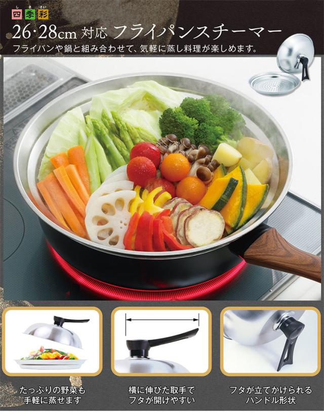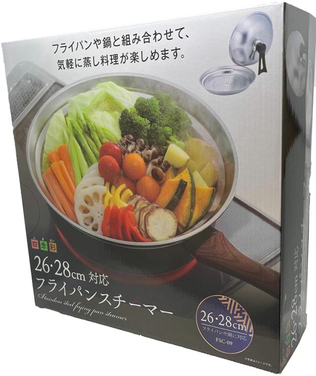 蒸し器 シルバー 蒸しプレート カクセー スチーマー フライパンスチーマー 26・28cm対応 FSC-09 フライパン用 鍋用 キッチン用品 蒸し料理 フライパンにのせて使う ふた付 ステンレス製 フタ付