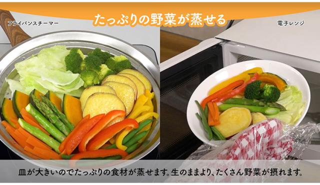 フライパンや鍋と組み合わせて、気軽に蒸し料理が楽しめます。