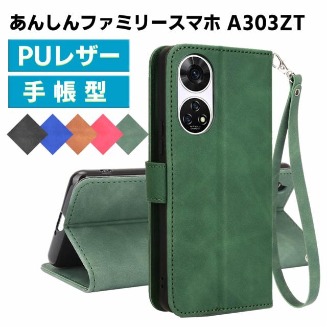 あんしんファミリースマホ A303ZT ケース スマートフォンケース 手帳型ケース ストラップ付 二つ折りケース カバー マグネット 定期入れ ポケット シンプル スマホケース TPUケース スタンド機能 携帯ケース