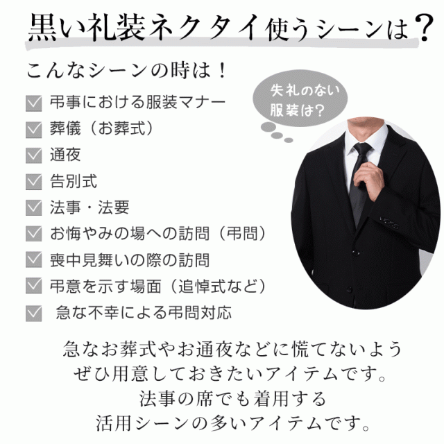 ネクタイ 黒 葬式 黒ネクタイ 礼装 礼服 葬儀 お葬式 法事 お通夜 弔事 法要 告別式 冠婚葬祭 ブラックネクタイ 送料無料 メール便