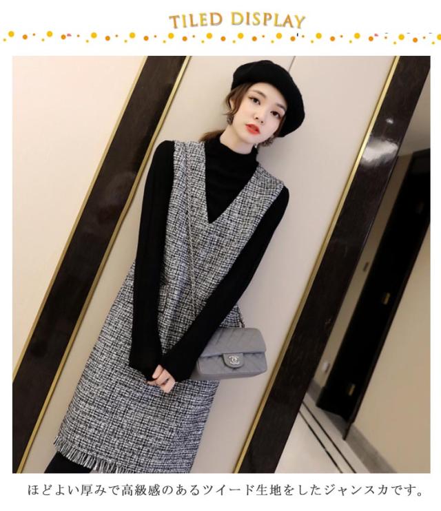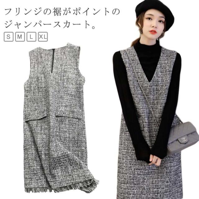 30代 ジャンパースカート フリンジ 大人 ノースリーブ ジャンパースカート レディース ジャンスカ 秋 ツイード ロング Vネック フォーマル オフィス 通学 通勤 カジュアル ワンピース 重ね着 レイヤード コーデ おしゃれ キラキラ ラメ 20代 タッセル 40代 50代 60代