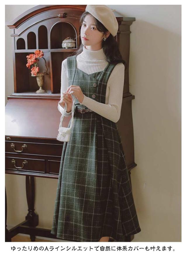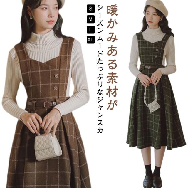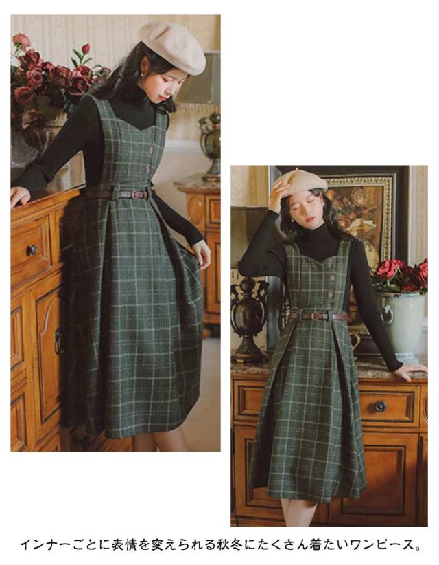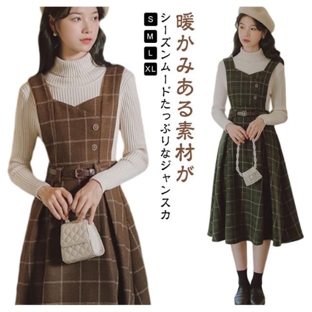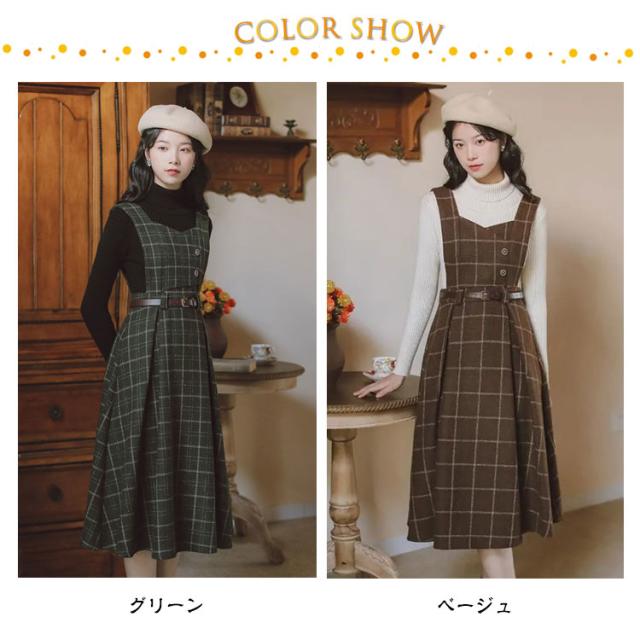 | 暖かみある素材がシーズンムードたっぷりなジャンスカ 中厚手のツイード風の異素材ミックス生地を使用。 ウエストにはベルト付きで、腰回りをすっきりと見せてくれます。 ゆったりめのAラインシルエットで自然に体系カバーも叶えます。 インナーごとに表情を変えられる秋冬にたくさん着たいワンピース。 | |