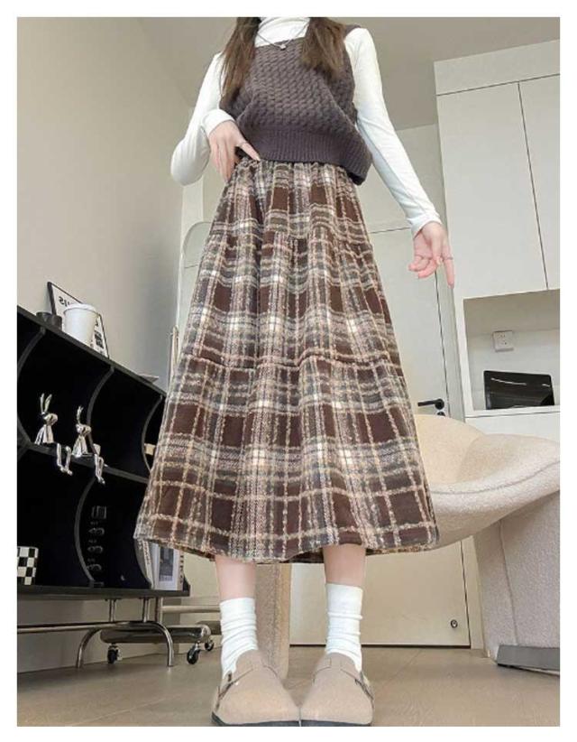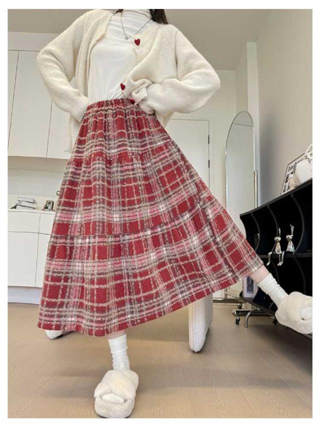 通学 防寒 フレアスカート 秋冬 スカート ティアード ティアードスカート ゴムウエスト スカート Aライン チェックスカート ハイウエスト 体型カバー あったか チェック柄 大きいサイズ レディース 通勤 ロングスカート 大人 カジュアル 40代 30代 20代