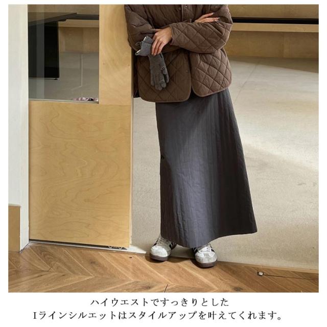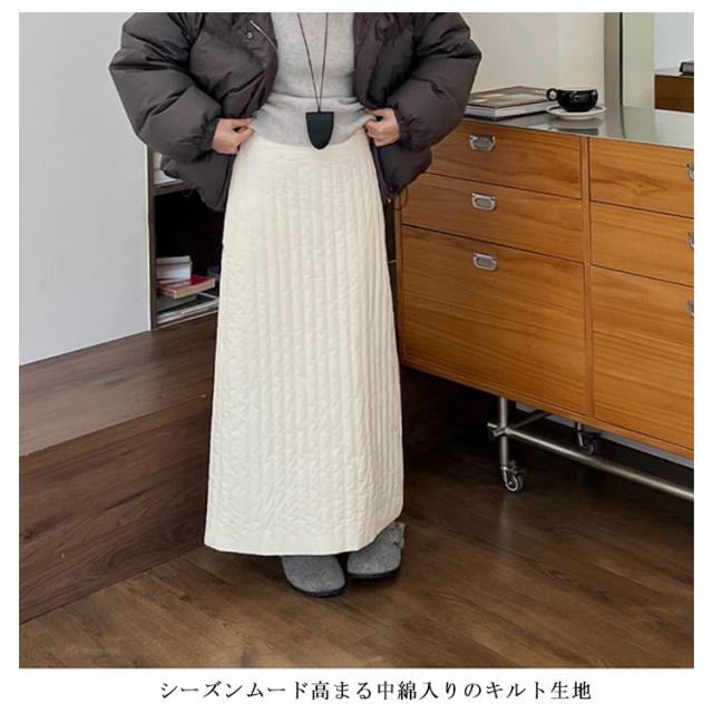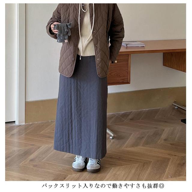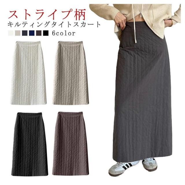 キルティングスカート タイト ハイウエスト 軽量 きれいめ あったか レディース ロングスカート ストライプ柄 タイトスカート ロング スリット 裏地付き 防寒 スカート 厚手 中綿 キルト スカート キルティング キルティングスカート 大人 50代 韓国風 おしゃれ 【送無】