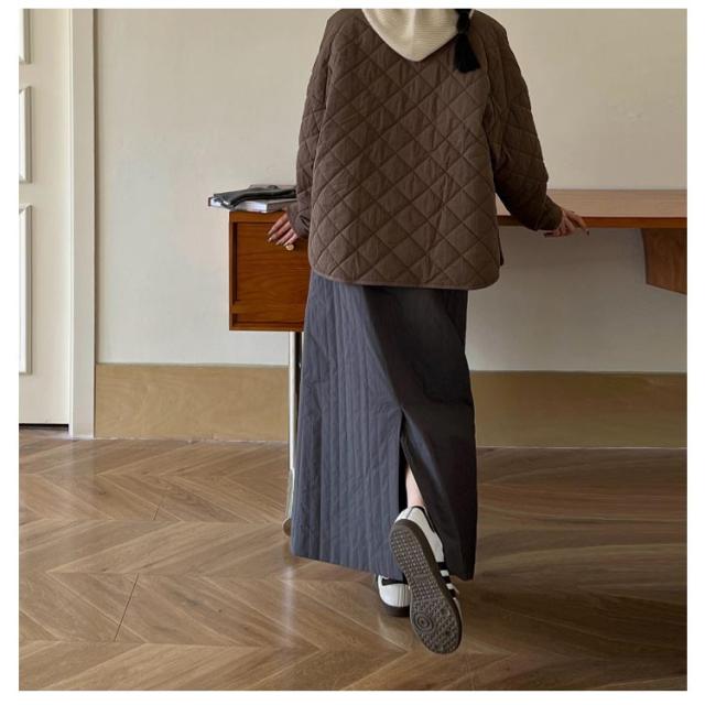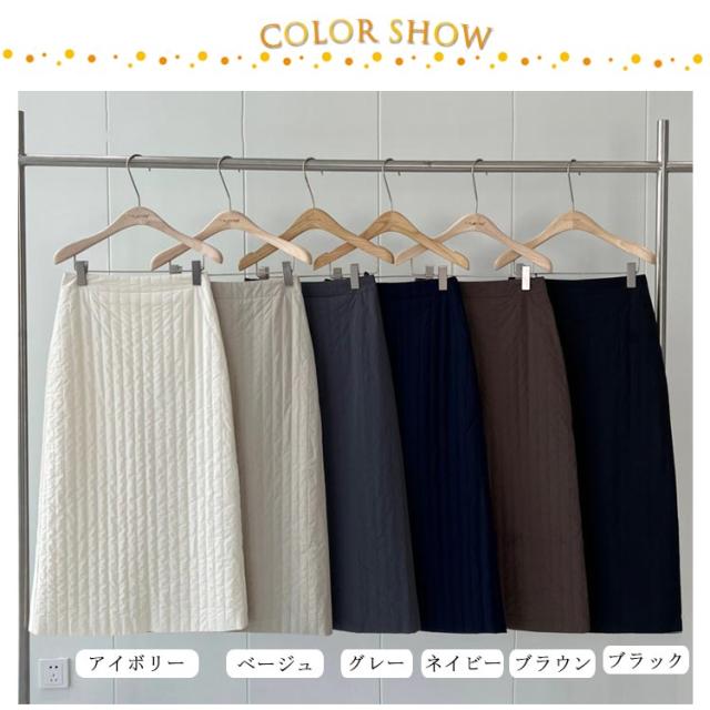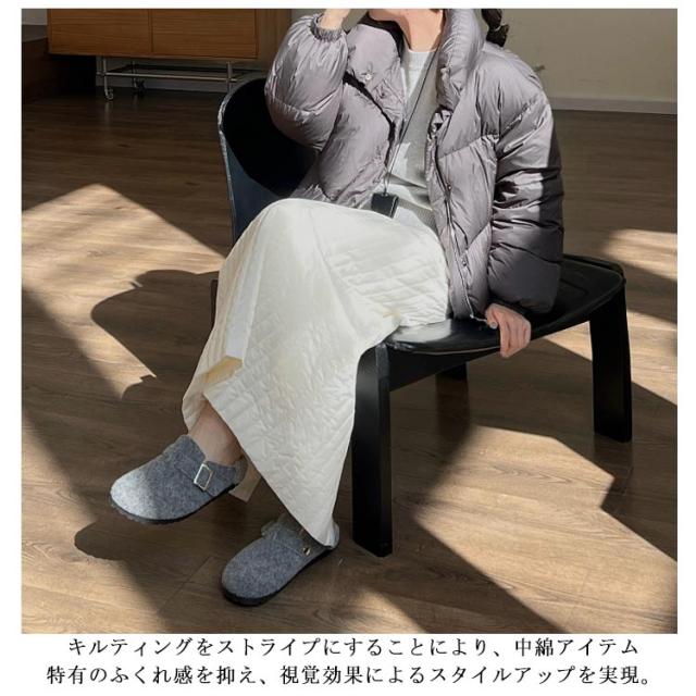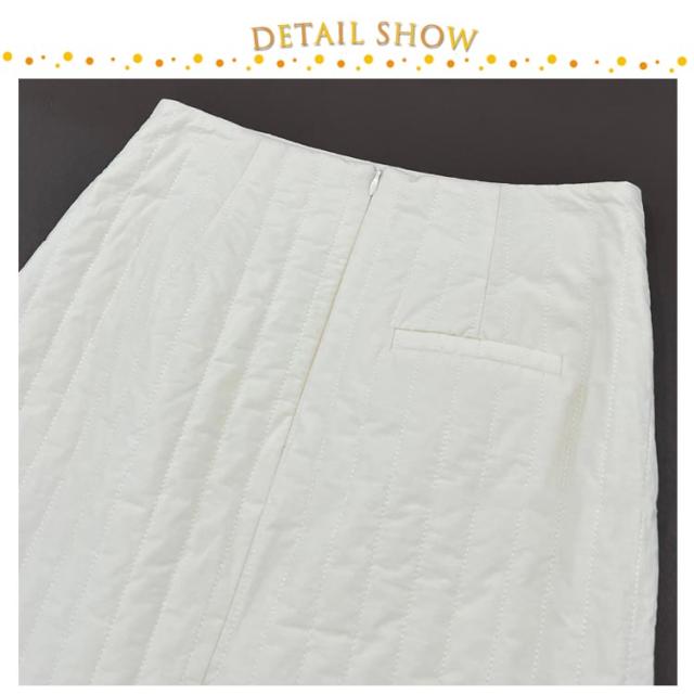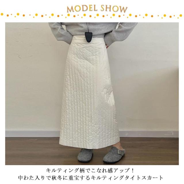 | キルティング柄でこなれ感アップ!中わた入りで秋冬に重宝するキルティングタイトスカート シーズンムード高まる中綿入りのキルト生地 キルティングをストライプにすることにより、中綿アイテム特有のふくれ感を抑え、視覚効果によるスタイルアップを実現。 バックスリット入りなので動きやすさも抜群◎ ハイウエストですっきりとしたIラインシルエットはスタイルアップを叶えてくれます。 | |