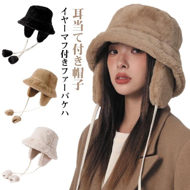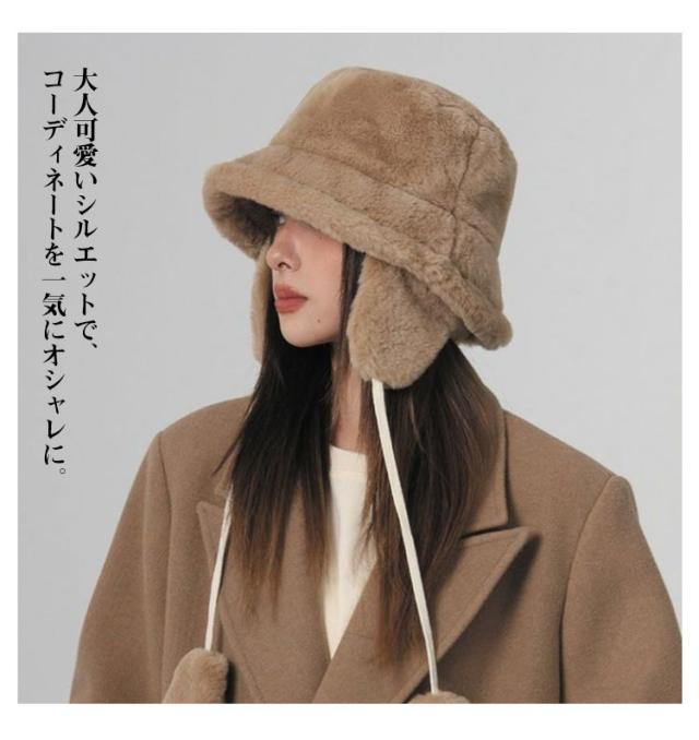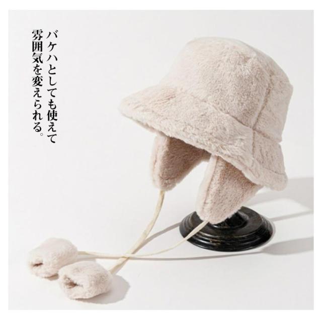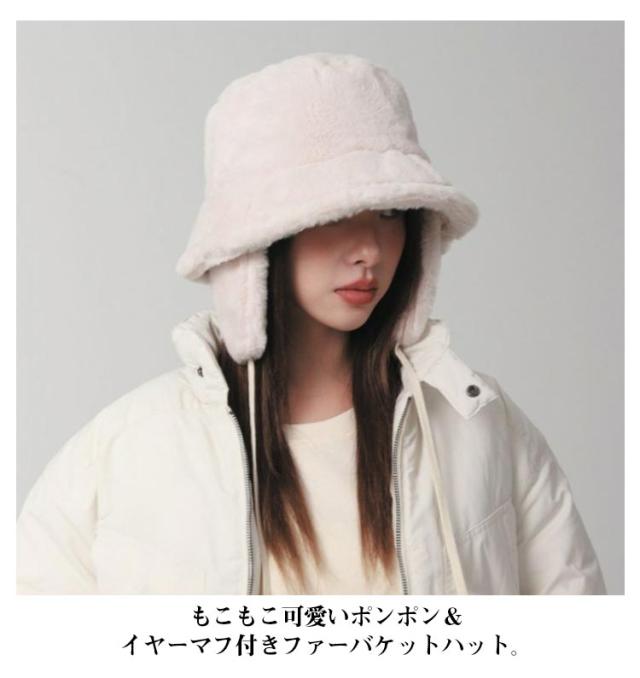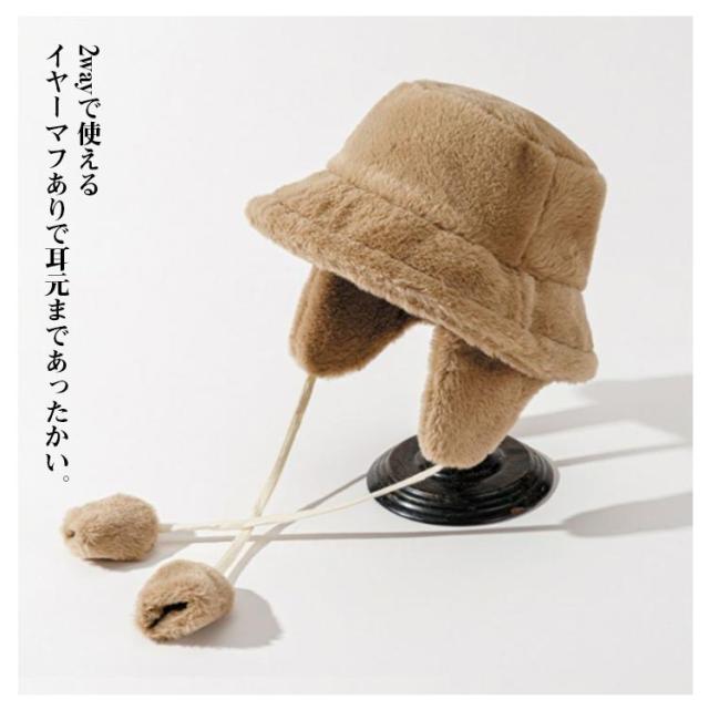 イヤーマフ 無地 あったか 帽子 冬 もこもこ ハット 2way 取り外し可 フェイクファー レディース 防寒 紐 おしゃれ かわいい ふわふわ 折りたたみ 耳当て コンパクト バケットハット 調節 カジュアル シンプル デイリー 韓国 コーデ アウトドア キャンプ イアマフ
