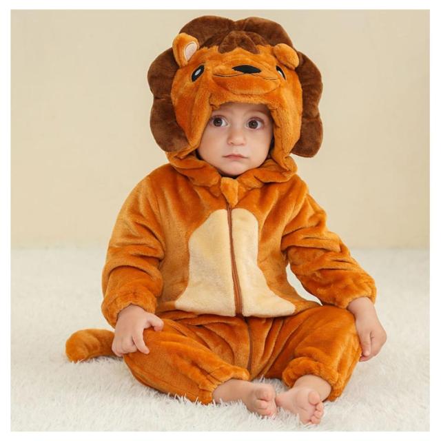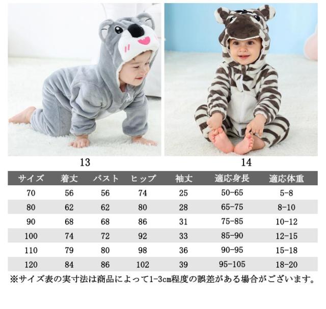 | 70cm 80cm 90cm 100cm 110cm 120cm ふわふわボア素材の着ぐるみロンパース。 記念撮影や年賀状、ハロウィンでの仮装やSNSの投稿にピッタリ! 上下が繋がったロンパースは1枚で着られて、 股部分のスナップを外しておむつ替えも楽ちん◎ | |