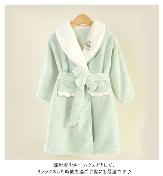 | ふわふわ柔らかな肌触りがクセになるキッズ用バスローブです。 抜群の吸水性と柔らかな肌触りで、お風呂上がりのキッズを優しく包みます。 部屋着やルームウェアとして、リラックスした時間を過ごす際にも最適です♪ 左右にポケットが付いているのも嬉しいポイント◎ 腰ベルトも付き!体調や気分に合わせて調節可能ので、窮屈感なし! | |