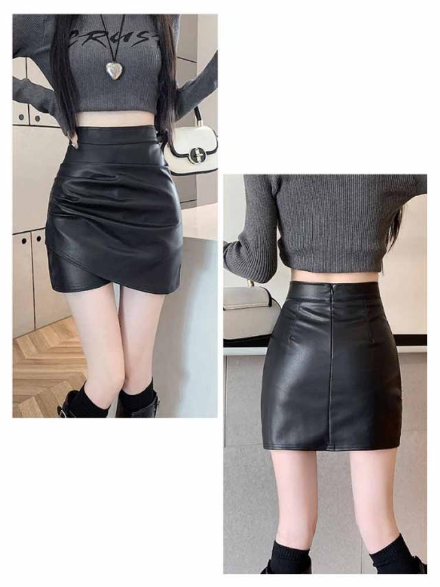 ハイウエスト 着?せ ミニスカート タイトスカート レザースカート エナメル 美脚 PUレザー スカート レザータイトスカート ショート丈 レザータイトスカート エコレザー スリム タイト ギャザー入り レディース ボディコン 送料無料 ブラック ホワイト