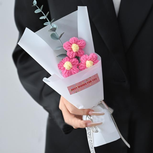 手作りバラ かぎ針編みフラワーブーケ 毛糸の花束 枯れない花 光 ハンドメイド インテリア クロシェフラワー ニット 母の日 プレゼント 記念日 敬老の日