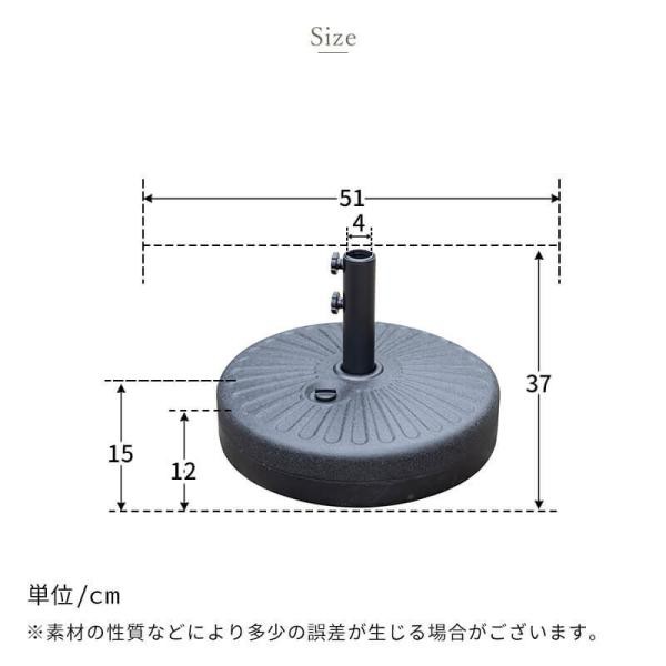 サイズ ベース部分:幅51x奥行51x高さ37cm ※詳しいサイズは商品ページ内のサイズ画像をご確認下さい。 梱包サイズ [1梱包] 約56x15x52cm 梱包重量:約3.1kg 仕様 ベース:ポリエチレン 備考 こちらはベースのみの販売ページとなっており、パラソルは付属しておりません。 保証期間 商品お届け日から1年間 |