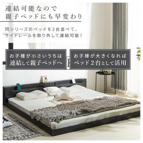フロアベッド ダブル マットレス付き ベット すのこベッド ロータイプ ローベッド ポケット コイル ベッド 親子ベッド フレーム 照明 連結