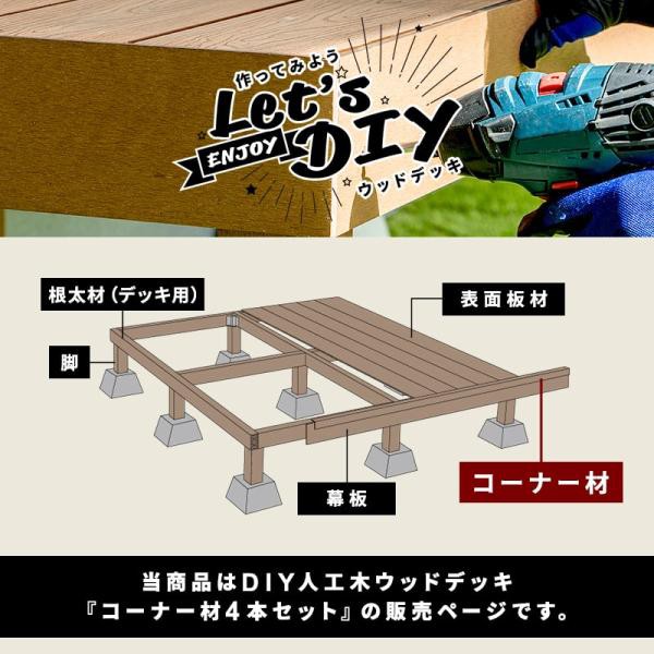 コーナー材 角材 4本 人工木デッキ用 ウッドデッキ DIY 人工木 おしゃれ キット デッキ ガーデンデッキ ステージ 庭 エクステリア 組立