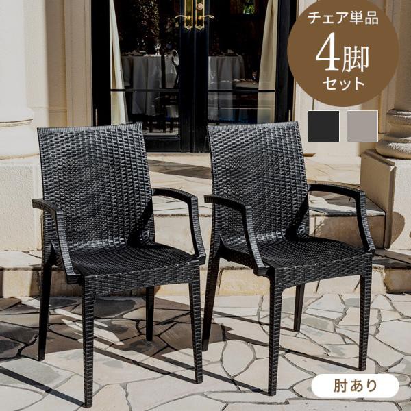 チェア ガーデンチェアー チェアー 肘あり スタッキング 軽量 雨ざらし 屋外 ラタン調 4脚セット ガーデン家具 椅子 ガーデン アウトドア 屋外用 バルコニー