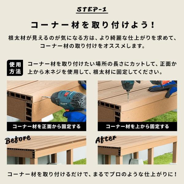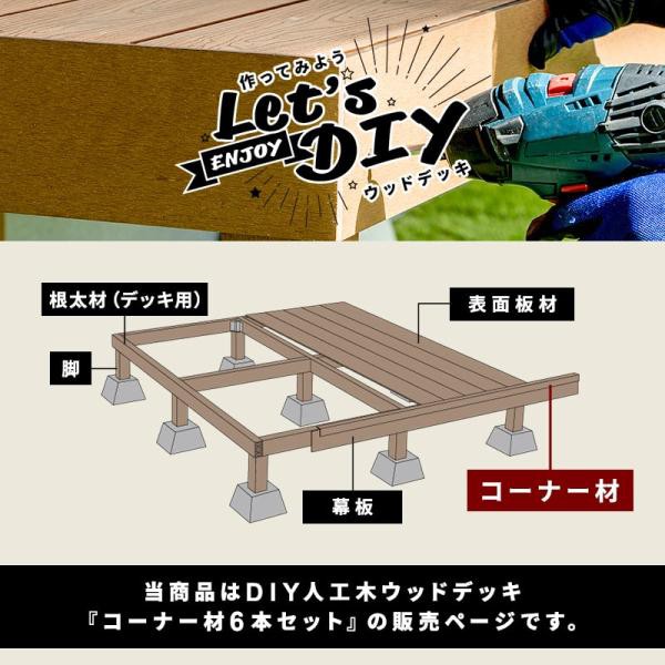 コーナー材 角材 6本 人工木デッキ用 ウッドデッキ DIY 人工木 おしゃれ キット デッキ ガーデンデッキ ステージ 庭 エクステリア 組立