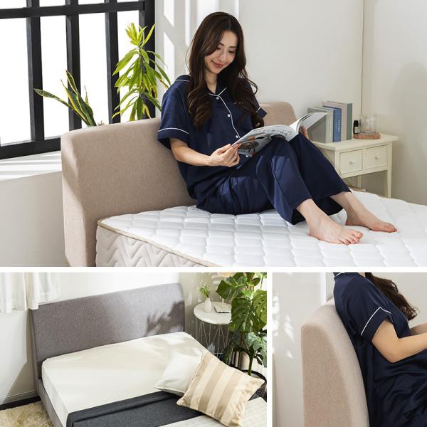 ベッド セミダブルベッド くつろぎ背もたれ シンプル ファブリックベッド ファブリック ソファのようなベッド ベッドフレーム ベージュ グレー かわいい