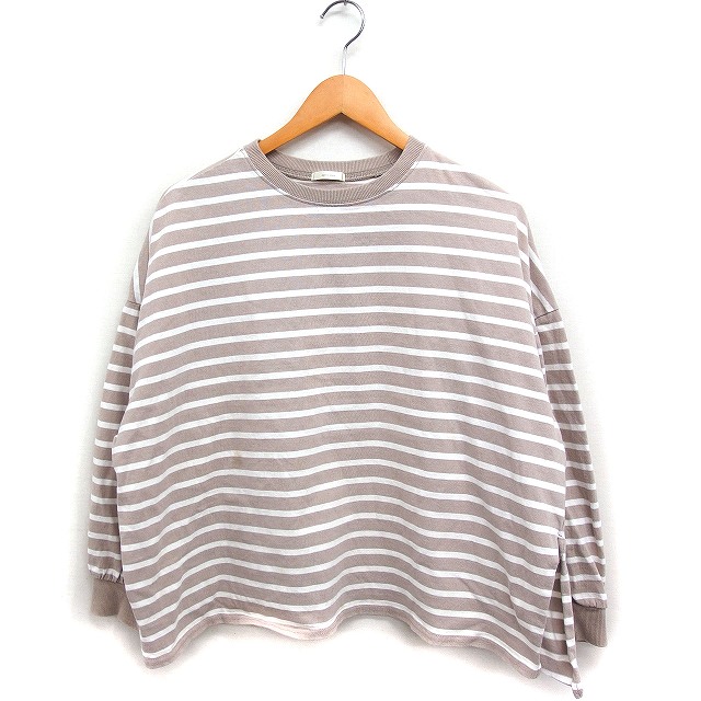 【中古】アプレジュール apres jour ボーダー ワイド カットソー Tシャツ 長袖 丸首 コットン 綿 F モカブラウン /FT