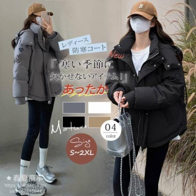 防寒コート レディース 中綿ジャケット フード付き ショート丈 アウター 秋冬 防寒 暖かい 厚手 ゆったり 韓国風 可愛い カジュアル 通勤 通学