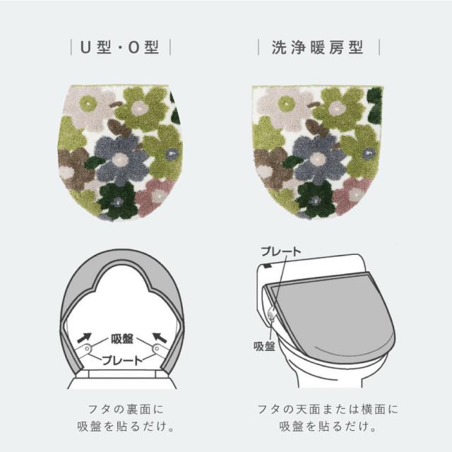 兼用蓋カバーは裏面に吸盤付きで、洗浄暖房・O型・U型全ての便座に使用可能です。