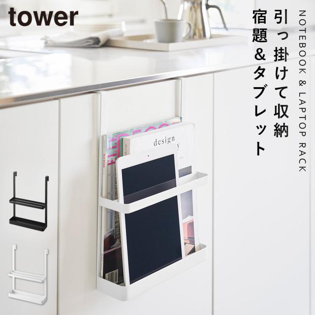 引っ掛け宿題&タブレットPCラック タワー 山崎実業 tower マガジンラック 壁掛け 扉 引っ掛け 収納 タブレット ラック おしゃれ モノトーン ホワイト ブラック 1785 1786
