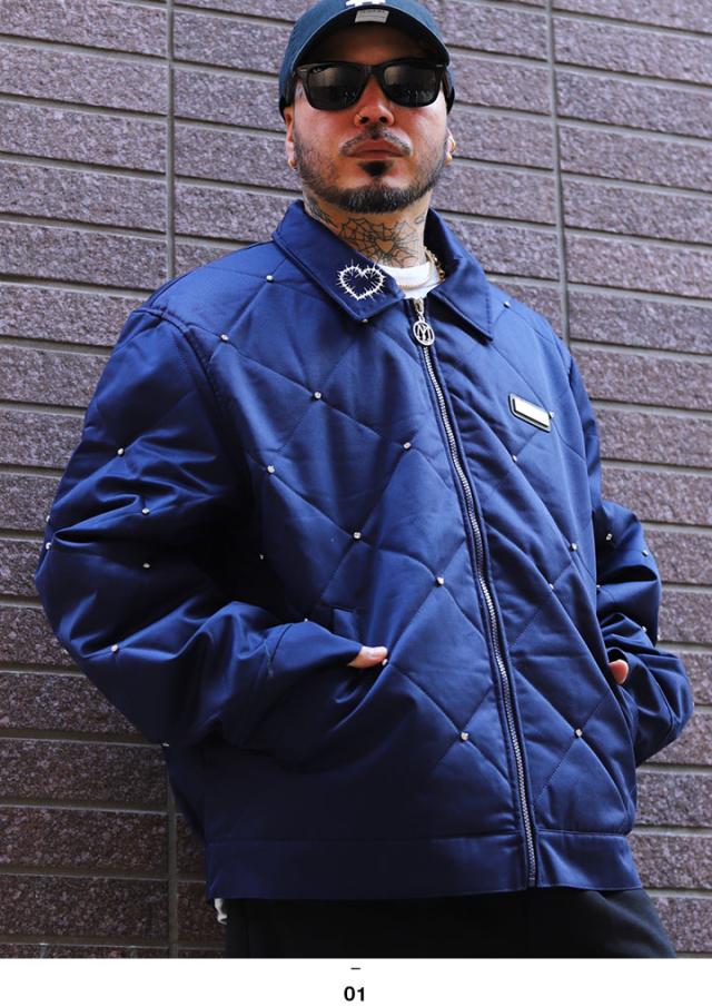 【30%OFF】LIVE MECHANICS アウター キルティング 長袖 中綿 ジャケット ブルゾン メンズ 春秋冬用 紺 大きいサイズ ライブメカニクス 防寒着 派手 総柄 ラインストーン 襟付き ビッグシルエット 暖かい b系 ヒップホップ ファッション ストリート系 服 LMJ102