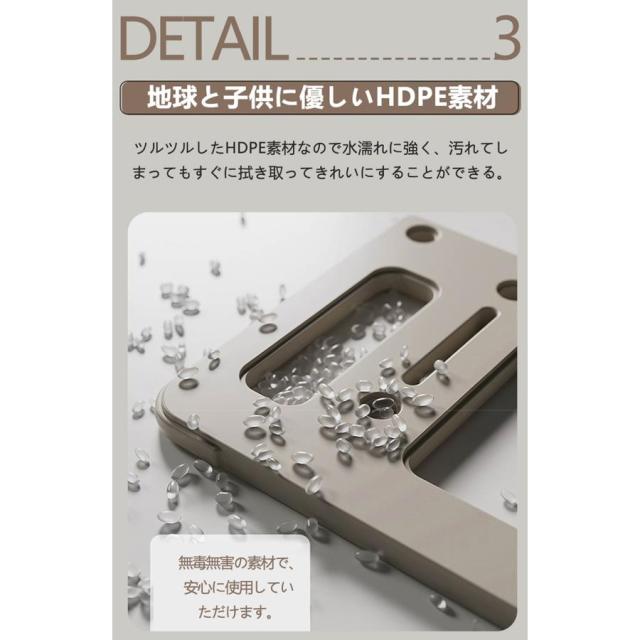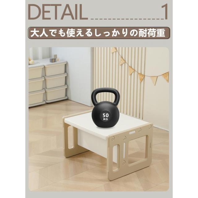 【detail】大人でも使えるしっかりの耐荷重、角丸設計、地球と子供に優しいHDPE素材、組立簡単