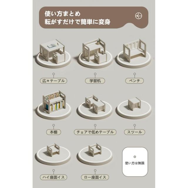 【テーブル】デスクを向きを変え、広々なテーブルに変身。十分な広さがあるため、お描きや友だちと卓上ゲームなどができます。いすを回転して、低めのテーブルを作れます。小さい子供でもお使いいただけます。学習机子供の読書スポットを簡単に作れます。読書が楽しくなる♪囲むような形で集中力UP