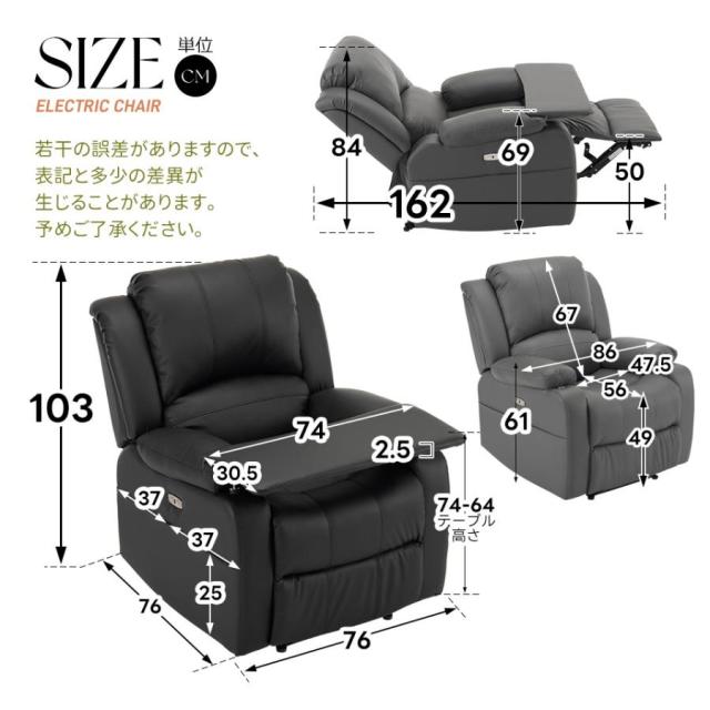 リクライニングチェア ライニングソファ オットマン サイドテーブル 1人掛け 電動 電動ソファ 耐圧分散 一人暮らし