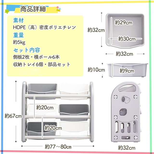 おもちゃがたくさん入る大容量トレイが全部で6つ。