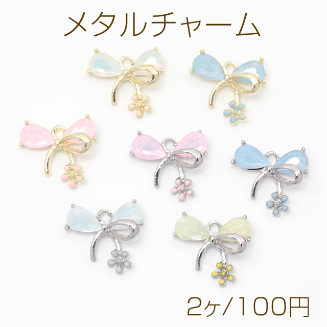 メタルチャーム 蝶チャーム 樹脂チャーム フラワー オーロラ 合金製 約16×17mm(2ヶ)