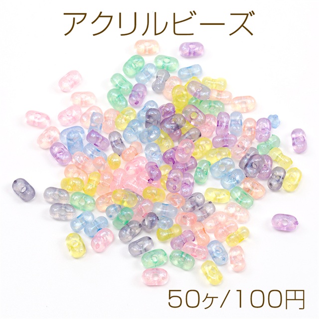 アクリルビーズ ピーナッツビーズ 透明アクリル ミックスカラー 約4×6mm(50ヶ)