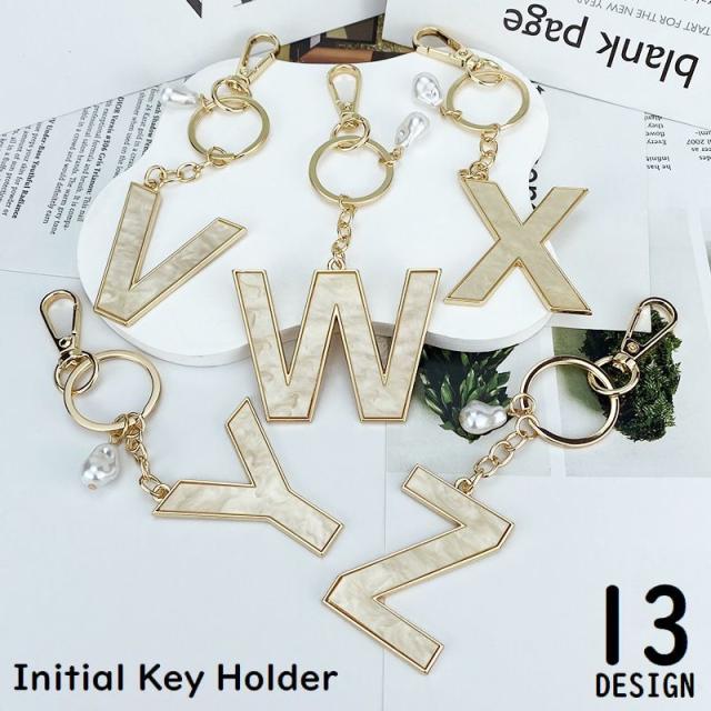 キーホルダー キーリング レディース バッグチャーム アルファベット 大文字 英語 英字 筆記体 イニシャル パール風 ビジュー