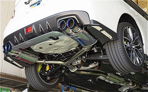 WRX STI CBA-VAB EJ20 4WD 2014年08月〜2020年04月 ※TYPE RA-R不適合 純正近接排気騒音:83/80dB 製品近接排気騒音:86/84dB 製品最低地上高:129mm(フロント部〜センター部間フランジ(リアメンバー下付近)) フェンダー高:【右前】677mm【左前】680mm【右後】679mm【左後】681mm