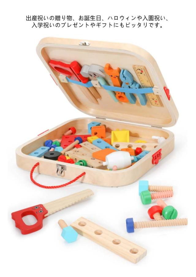 大工さんセット 工具おもちゃ 組み立て おもちゃ 男の子 女の子 52点セット 木製おもちゃ 知育玩具 モンテッソーリ 木のおもちゃ 工具 ままごと ごっこ遊び 大工さんごっこ 玩具DIY 知育玩具 ツールボックス 子供人気 収納ボックス付き 誕生日 クリスマス プレゼント