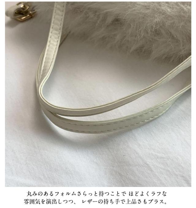 | 小さめサイズが可愛くてちょっとしたお出かけにぴったりな巾着型のショルダーバッグ ファーのようなフェイクファーをボリュームたっぷり、 ふわふわやわらかな肌ざわりで秋冬の季節感高まります。 コンパクトだけど存在感がバツグン。 お出かけ必需物がしっかりと入る容量が魅力のひとつ。 丸みのあるフォルムさらっと持つことで ほどよくラフな雰囲気を演出しつつ、 レザーの持ち手で上品さもプラス。 コンパクトなシルエットがバランスをとりやすく、 コーデのアクセントに使いやすいミニバッグ。 手持ちもショルダーもできる2wayで実用性も | |