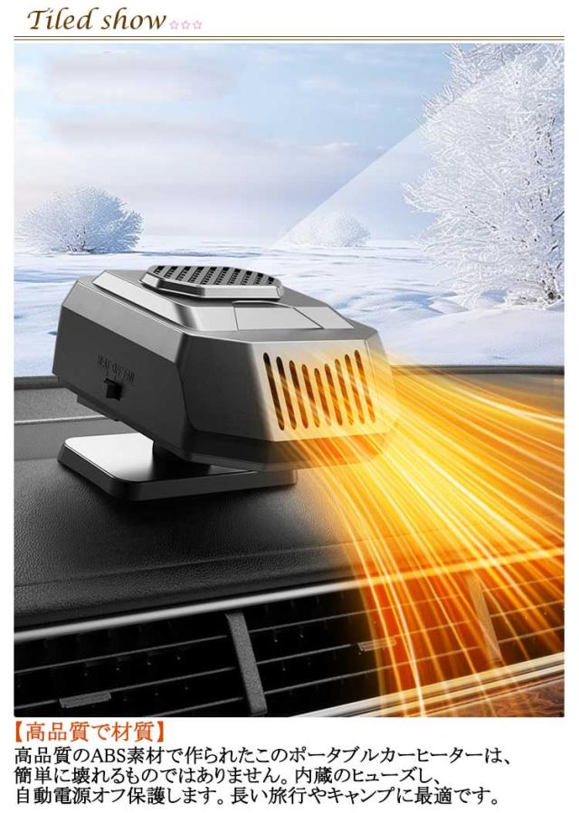 暖風 車載ファンヒーター ガラス除霜 急速発熱 ポータブルカーヒーター 冷熱両用 冷風 車中泊 12V/150W 除霧 温風機 除霜 シガーソケット給電式 車載ファンヒーター 凍結防止 自動車 SUV 車載ファンヒーター