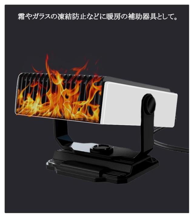 コンパクト ヒーター 車載ファンヒーター 冷熱両用 2in1 小型ヒーター 180° 送風機 回転 車載用 12V/150W 暖房 温風 送風 除霜 カーヒーター サーキュレーター 車載ファンヒーター ガラス凍結防止 シガーアダプター 12V