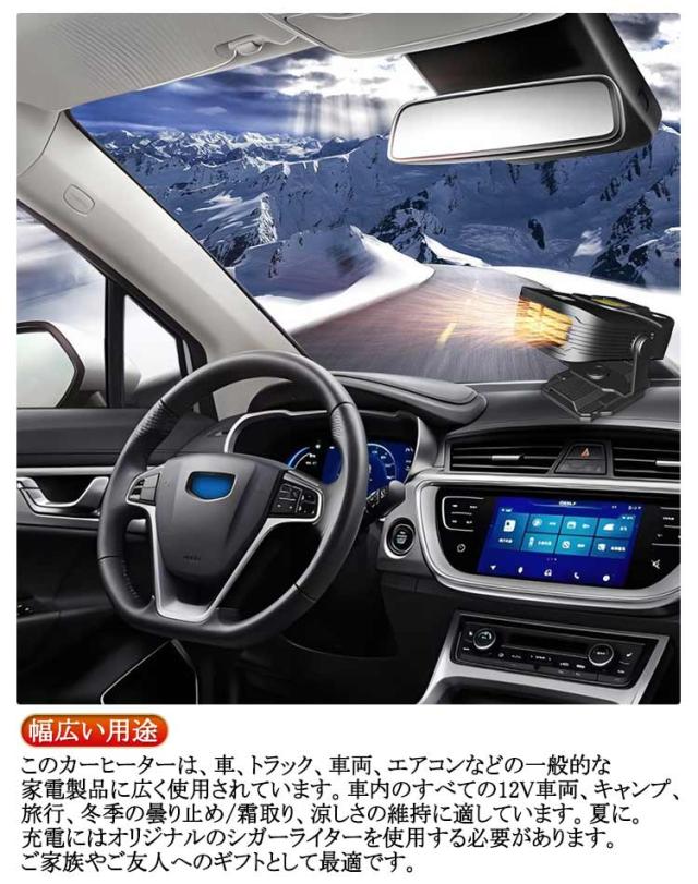温風 車載ファンヒーター 車載 カーヒーターファン 車中泊 12V/150W 車載ファンヒーター 急速加熱 車用小型ヒーター 取付簡単 コンパクト ガラス除霜 上下 左右回転 暖房 除霜/除霧/保暖 曇り止め 自動車