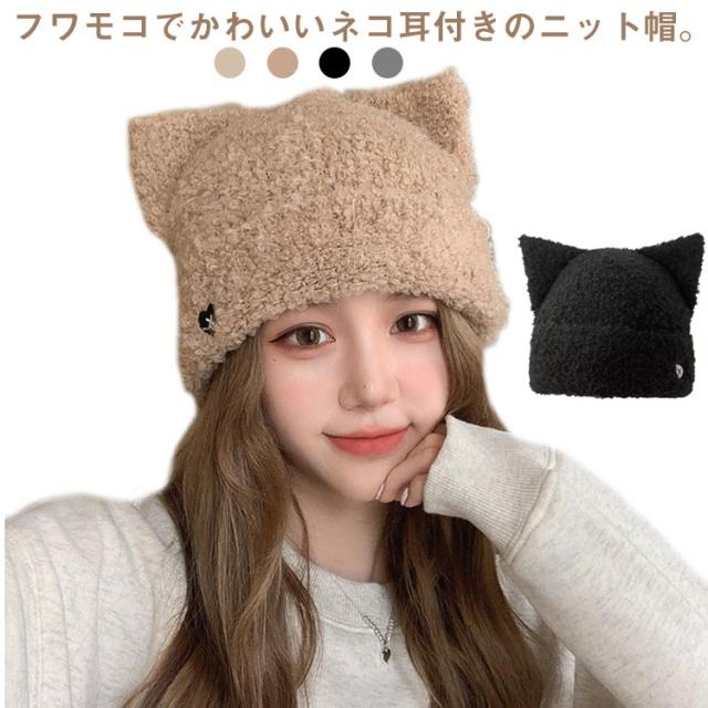 レディース 猫耳 ねこ耳 冬 耳付き ニット帽子 ニット帽 暖かい ニット帽 秋冬アイテム ニットキャップ 大人用帽子 防寒 帽子 シンプル 帽子 厚手 フリーサイズ ニットキャップ