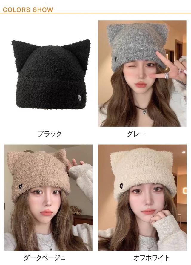 | フワモコでかわいいネコ耳付きのニット帽。 深めのニット帽なので、おでこや耳までスッポリと隠れます。小顔効果も期待できるニット帽です。 暖かいので、ファッションアイテムとしてはもちろん、防寒対策としてもオススメのニット帽です。 多少の伸縮性があるので、締め付け感が少ないニット帽です。 | |