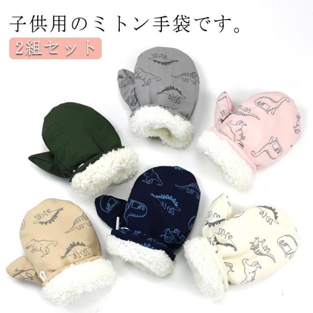 2組セット スノー 子ども 恐竜柄 男の子 指なし 女の子 手袋 恐竜 グローブ 子供 かわいい 手袋 手袋 PUレーザー 防水 無地 シンプル 防水 キッズ 手袋 2組セット 防寒 保温 ふわふわ 裏ボア 裏起毛 男の子 女の子 通学 通園
