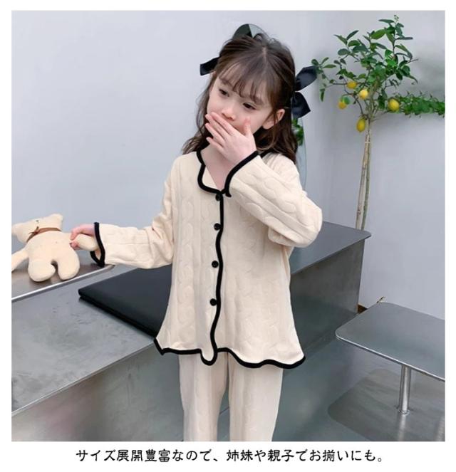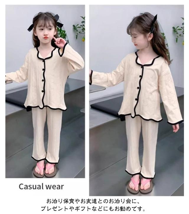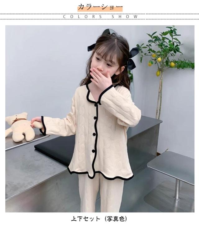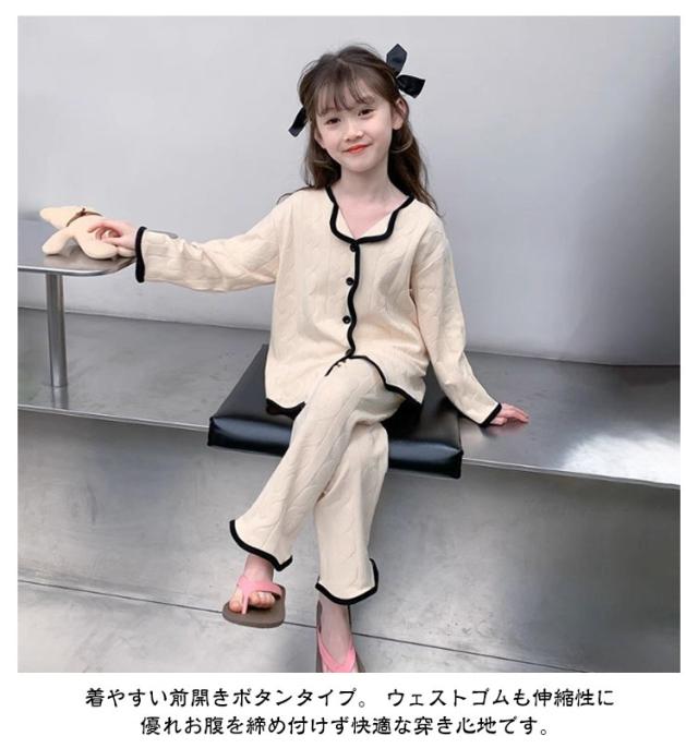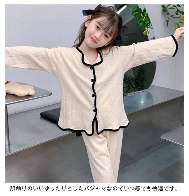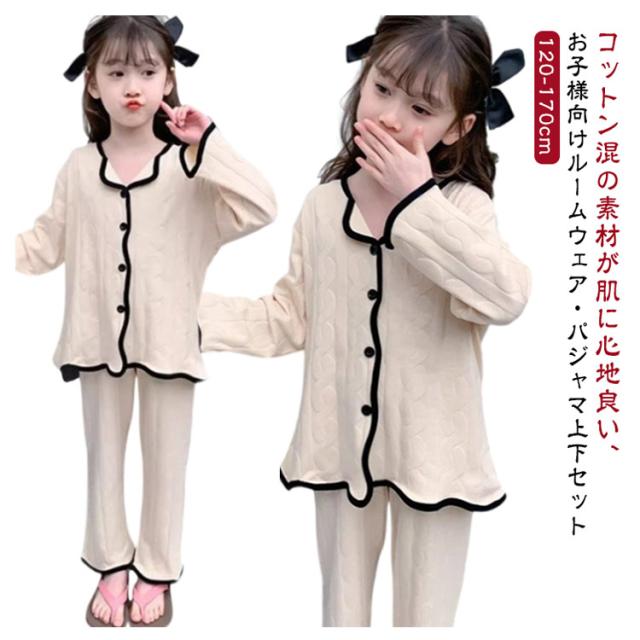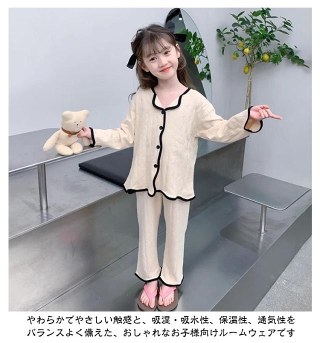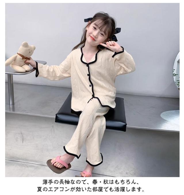 子供 秋 パジャマ キッズ 女の子 寝間着 トップス 前開き 薄手 綿 ロングパンツ ルームウェア 120 ガールズ 上下セット Vネック 子供服 部屋着 セットアップ コットン 春 夏 女児 可愛い シンプル 無地 柄 子供 130 140 150 160 170